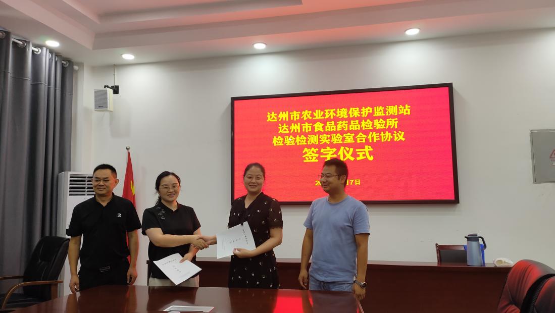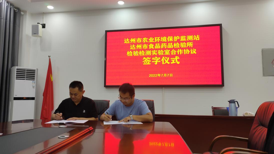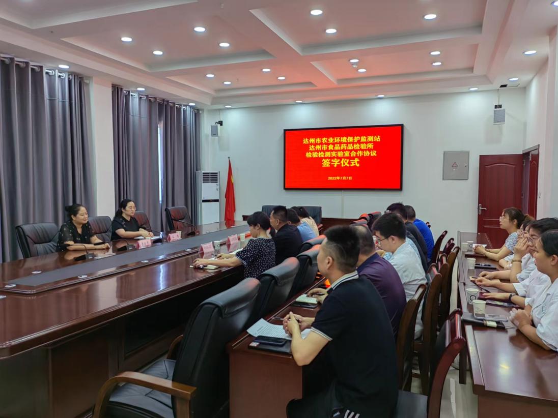 7月7日下午,达州市农业环境保护监测站和达州市食品药品检验所在药检大楼会议室签订了检验检测实验室合作协议,市农业农村局副局长李晓霞、市市场监督管理局总经济师谷穗出席了签字仪式。