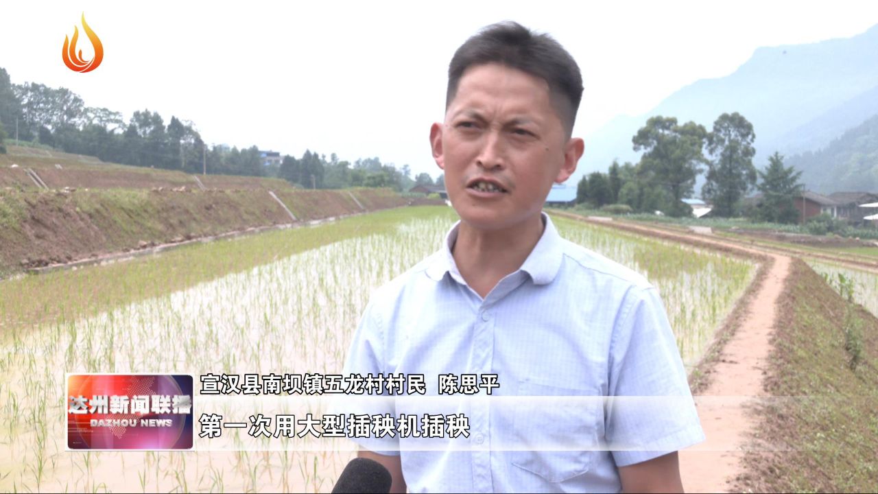 宣汉县南坝镇五龙村村民 陈思平:第一次用大型插秧机插秧,插得又快,效果又好,今年产量肯定会提高。而且沟渠灌溉设施也修得特别好,天干天涝都不怕,我心里面也比较踏实。