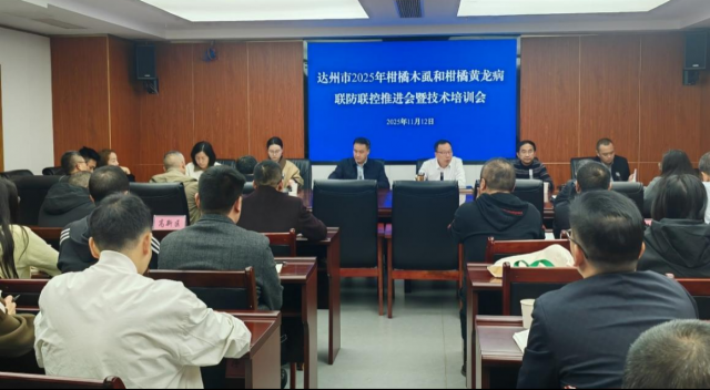 为认真贯彻落实全省柑橘木虱和柑橘黄龙病联防联控工作会议精神,有效阻截柑橘木虱及柑橘黄龙病的传播蔓延,全面提升联防联控水平,2025年11月12日,达州市2025年柑橘木虱和柑橘黄龙病联防联控推进会暨技术培训会顺利召开,市委农办、市农业农村局分管领导,市林业局、市公路建设服务中心、市邮政管理局有关负责同志,各县(市、区)农业农村局分管负责同志,达州高新区城乡融合发展中心、达州东部经开区社会事业局负责同志,市县两级特色产业、植检、茶果系统负责同志等共计50余人参会。