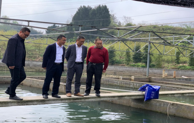(图为市农业农村局副局长冉小伟到大竹县检查指导水产养殖科学安全用药工作)